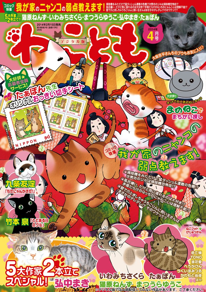 | 作者 | いわみちさくら,猫原ねんず,まつうらゆうこ,弘中まき,たぁぽん,なかやまさち,めで鯛,はなやぎぶんぶん,かわもと尚夜,へうがけん,竹本泉,コマツミキ,熊沢楓,浪花愛,曽根麻矢,九条友淀,雪セロリ,TONO,うぐいすみつる,すがわらめぐみ,佐々木史,若尾はるか,鮎,新子友子,渡辺ゆづる,水田ムゲン |